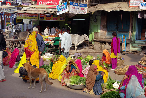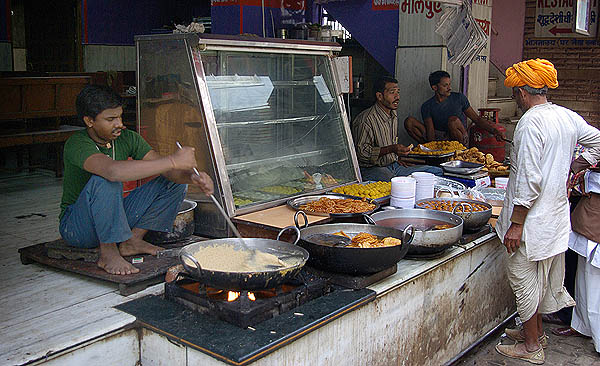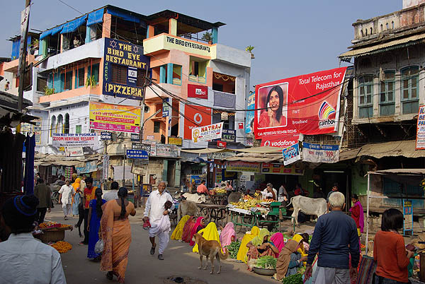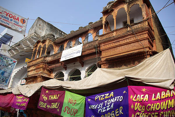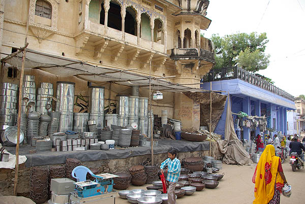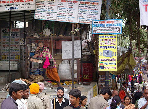 ![]() ![]() Pushkar évoque le Katmandou d'aujourd'hui, et ce n'est pas un compliment, tant l'une comme l'autre ont sacrifié leur âme, non pas aux dieux, mais aux touristes soit-disant baba cool. Le centre ville est une succession ininterrompue de magasins de fripes, de bibelots, de bijoux de pacotille, de cyber-cafés, de tatoueurs-pierceurs, et surtout d'un nombre impressionnant de restaurants typiquement indiens : pizzeria libanaise, soupes chinoises au fromage de Hollande, fast-food casher, german bakery, pseudo-japonais, hamburgers végétariens, Tex-Mex, salons de thé à l'européenne, quelques thalis tout de même... ![]() ![]()