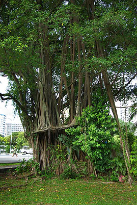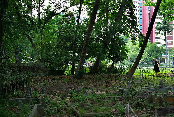 Près de la Mosquée Malabar, on traverse un ancien cimetière musulman, dont les stèles disparaissent dans la végétation, notamment un superbe banian ayant phagocyté une cabane, et des noix de coco germées.
