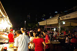 Une allée offre des dizaines de petits restaurants à ciel ouvert, avec tous les styles de cuisine asiatique. On a dîné d'un "kaya", qui ressemblait fort à des toasts au lait condensé.
