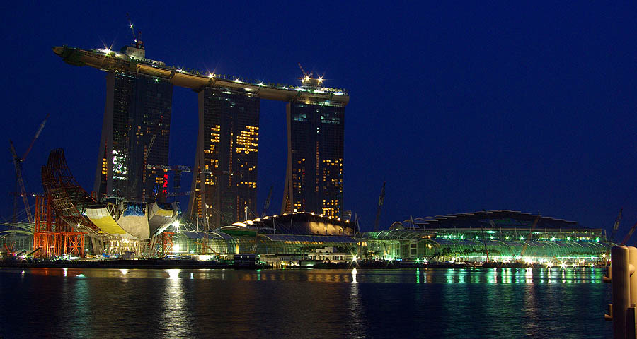 La nuit c'est beau. On attend tranquillement la tombée du jour à mesure que les buildings s'illuminent en se reflétant dans l'eau,