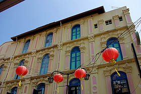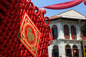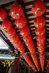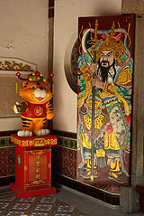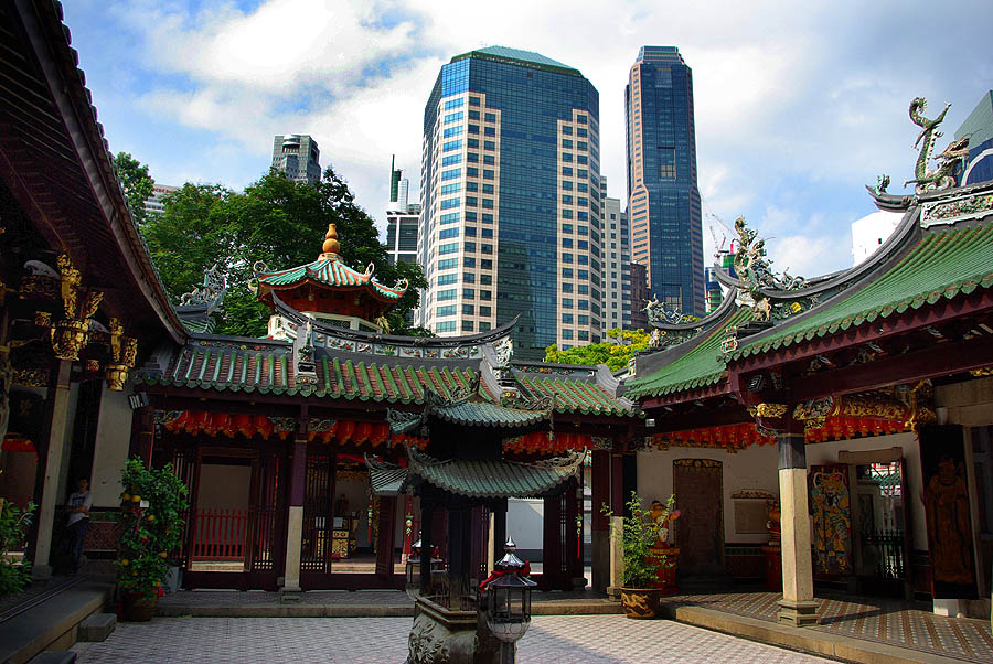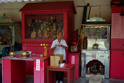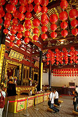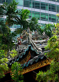 ![]() Le beau temple Thian Hock Keng, a modestement commencé en 1821-22, ses bâtiments actuels datant de 1839-42. Détail curieux, il ne comporte aucun clou, toute la structure de briques et de bois étant autoporteuse. Au centre, le sanctuaire de la Reine des Cieux accueille toujours les fidèles.
