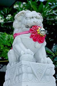 en Asie, plantes exubérantes, animaux exotiques, bouts de pagodes, tuiles vernies, chaleur humide. Mélange d'Occident et d'Asie, à tous points de vue.