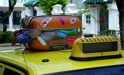 Certains taxis sont décorés de valises postiches incitant au voyage. Et en rappels réguliers qu'on est bien