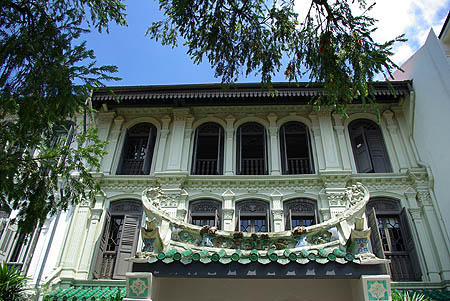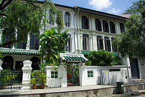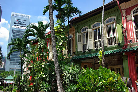 Petite surprise cachée entre deux immeubles, un passage encombré de fougères et de palmes débouche sur le quartier résidentiel d'Emerald Hill :