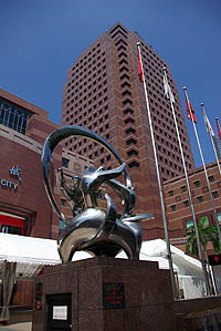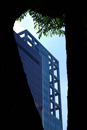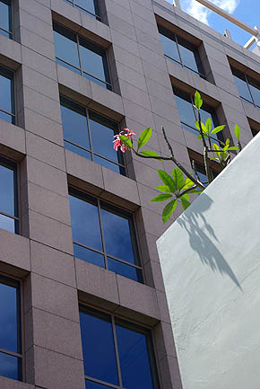 Parmi les immeubles de verre survivent quelques bâtiments coloniaux de l'époque anglaise. La couronne