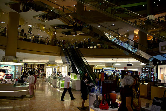 Les magasins y sont très spécifiques, uniques à cette ville, on n'en voit nulle part ailleurs de semblables : Mc Donald, Starbucks, Chanel, Vuitton, Prada, Armani... Carrefour !