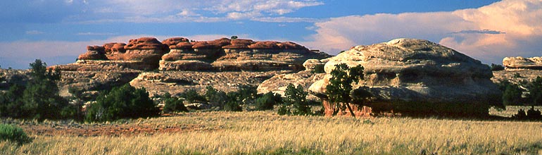 Canyonlands Canyonlands, de l'aube (ci-dessus) au crépuscule (ci-dessous) où les montagnes prennent feu, c'est magnifique. Un endroit particulièrement calme et désert, où l'on semble revenu au commencement des temps, les dinosaures en moins. ![]() ![]()