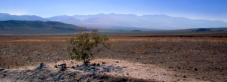 ![]() A l'entrée, on se trouve au point de Badwater, devant un vaste désert de sel (que l'on voit par exemple dans le film Independance Day). Il faisait si chaud, en cette fin d'après-midi, que les semelles en caoutchouc collaient sur les roches ferreuses et que l'afficheur à cristaux liquides de mon appareil photo est devenu tout noir et resté ainsi pendant deux jours. C'est non sans une certaine pensée compatissante que nous avons salué tous ceux qui avaient traversé cet enfer de près de 8000 km² à pied, à dos de mule ou en chariot, mais sans climatisation. On a cependant vu des marathoniens de l'extrème y courir ! ![]()