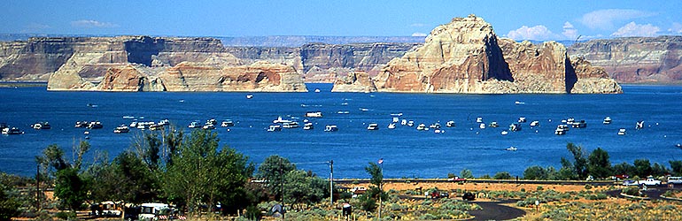 Le lac Powell, du nom du major qui descendit le Colorado en 1869, est né de la création du barrage (ci-contre) qui a englouti Glenn Canyon en 1980.