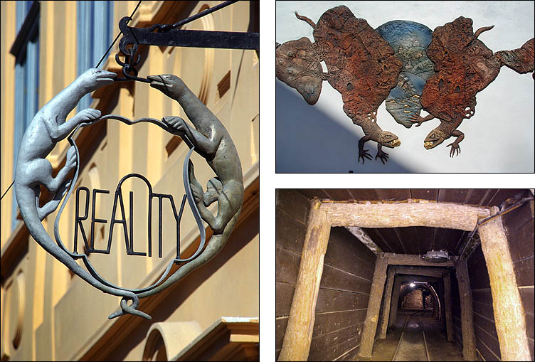 ![]() Nous avions prévu d'arriver en Slovaquie par l'est, mais des petits soucis mécaniques avec la moto nous ont un peu retardés, du coup on est entrés par le sud, et Banska Stiavnica fut une excellente introduction ! Cette ville-gruyère est bâtie sur une caldeira volcanique, et presque chaque maison recèle une entrée de mine. En 1829, 75% de la production d'or et d'argent d'Europe venait d'ici, de quoi financer de belle petite ville penchée, mais aussi tous les fastes de la cour impériale... et pas mal de guerres. ![]() ![]() Deux salamandres, l'une saupoudrée d'argent et l'autre d'or, apparurent à un berger. En voulant les attraper, il découvrit la première mine... et depuis 800 ans, les hommes ont extrait des milliers de tonnes de minerai précieux. Les batraciens sont devenus les emblèmes de la ville. Ci-dessous, au sous-sol de la très chouette pension "Cosmopolitan", après la cave à vin, le tunnel continue et devient une mine, dans la plus pure tradition locale. ![]() ![]() ![]() ![]() ![]() ![]() ![]() Les hauteurs sont parsemées au choix de HLM colorés ou de petits châteaux perchés. Un peu plus loin, la route redevient plus plate, tandis qu'on progresse vers le nord, mais la vallée ne durera pas, la chaîne des Mala Fatra et ses immenses forêts se profilent déjà sur l'horizon tout proche. ![]() ![]() Escale au petit village de Hronsek, "célèbre" pour son temble protestant en bois, construit sans aucun clou, pouvant accueillir 1000 fidèles. Son beffroi séparé le regarde depuis l'autre côté de la rue. Tout est propet, fleuri, c'est bien agréable ![]() ![]() Kastel Z Roku, une belle maison baroque transformée en école. On s'imagine bien la restaurer, pile la bonne taille, et l'endroit est assez isolé mais tellement serein. Et le maïs, toujours le maïs, dès que la plaine est arable. ![]() ![]() |