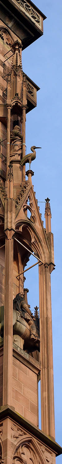 ![]() ![]() Cigogne parmi les bas-reliefs en façade de la cathédrale de Strasbourg |