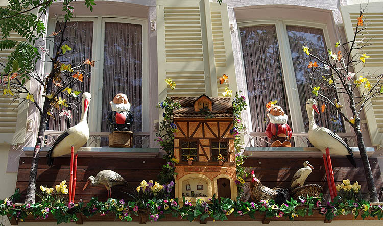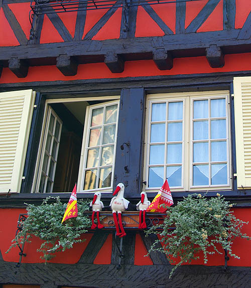 Cet échassier, devenu symbole de l'Alsace, avait déserté la région et il n'en restait qu'une vingtaine d'individus en 1975. Grâce aux ornithologues, plusieurs dizaines de couples sédentarisés y nichent de nouveau. Après trois ans de captivité, elles perdent l'instinct de migrer et vivent à demeure en Alsace, suffisamment bien nourries pour ne pas craindre le froid. En tous cas, elles sont largement représentées sur les façades et les boutiques à touristes, sous toutes les formes et à toutes les sauces (euh non, pas les sauces, ça ne se mange pas c'te bête-là !).